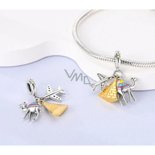 Charm Sterlingové stříbro 925 Egypt pyramida, velbloud, letadlo, 3v1 přívěsek na náramek cestování