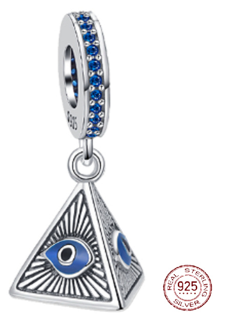 Charm Sterlingové stříbro 925 Egypt Pyramida - vševidoucí oko, přívěsek na náramek cestování