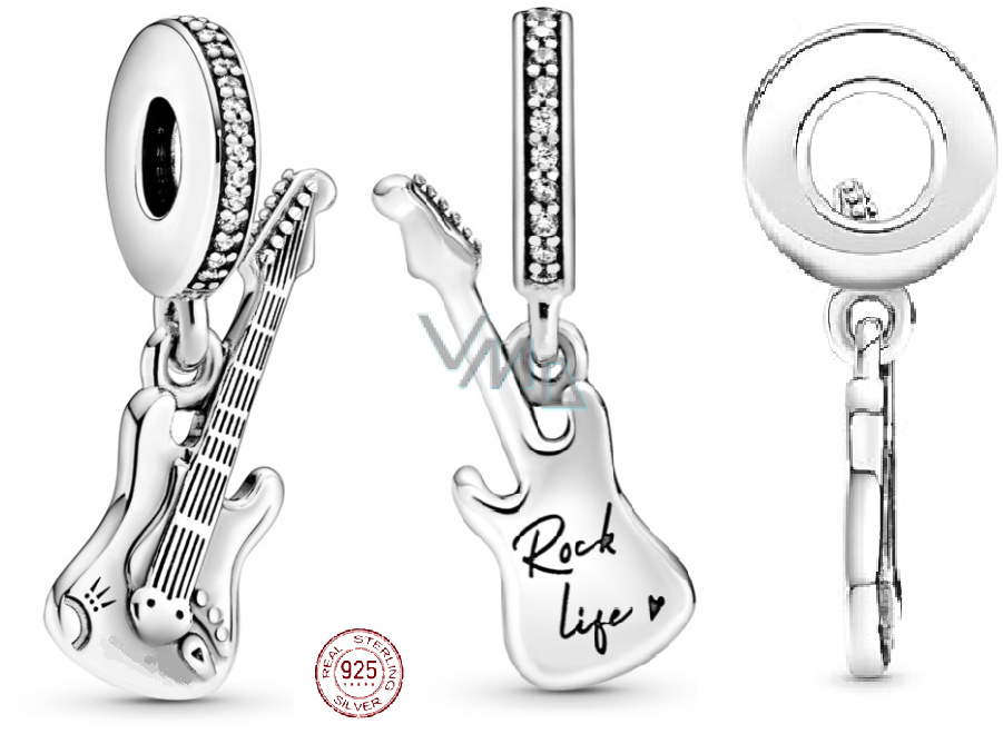Oživte svůj styl s tímto přívěskem elektrické kytary. Přívěsek ze sterlingového stříbra se vyznačuje čirým třpytivým kubickým Zirkonem pro lesk, který se hodí i pro ty nejnáročnější rockové Hvězdy a královny punk rocku. Přední strana obsahuje detail srdce, zatímco zadní strana má rytinu „Rock life“, aby každý věděl, že vaší první láskou a vášní je a vždy bude rock'n'roll.