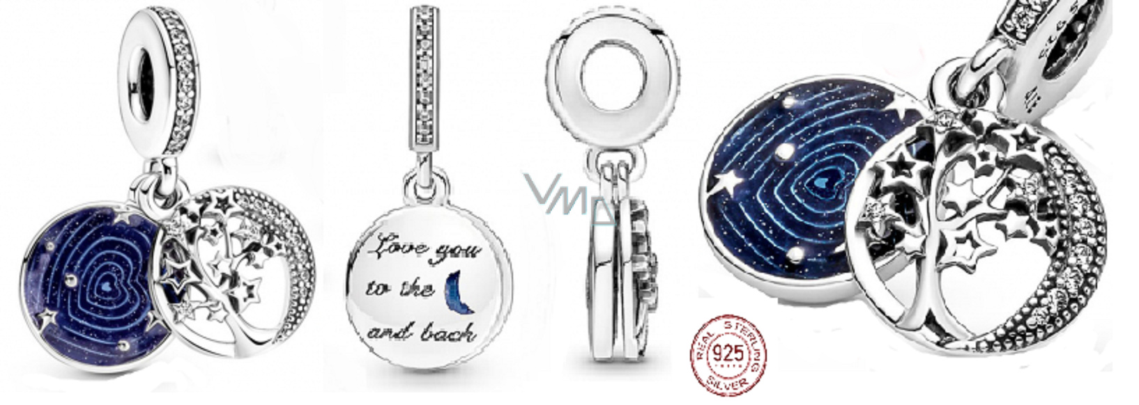 Charm Sterlingové stříbro 925 Galaxie a strom 2v1, přívěsek na náramek láska