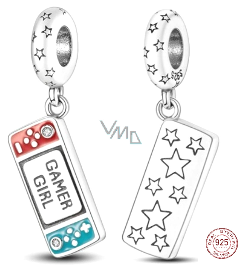 Charm Sterlingové stříbro 925 Gamer Girl - hráčský dívčí přívěsek na náramek, zájmy