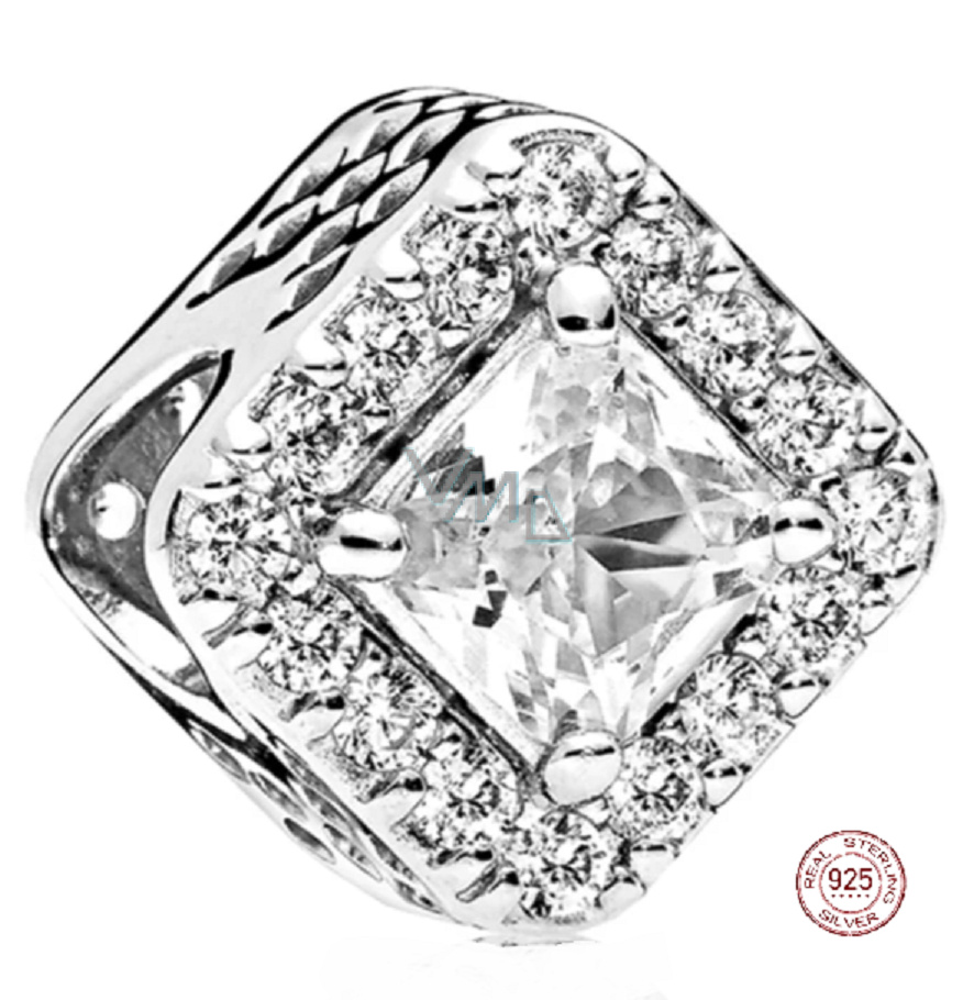 Tento dokonale symetrický přívěsek ze stříbra je ohromující a má nadčasový design. Má čtvercový vzhled, do korálku jsou vsazené průhledné kamínky kubické zirkonie a je ozdoben dvěma hroty vsazenými osmihrannými kamínky kubické zirkonie. Je pečlivě vyřezávaný a zářivý, splývající s tvarem, takže je oslnivý. Dutý čtvercový vzor mu dodává romantickou barvu. Je ideální, pokud chcete svému vzhledu dodat jiskru.