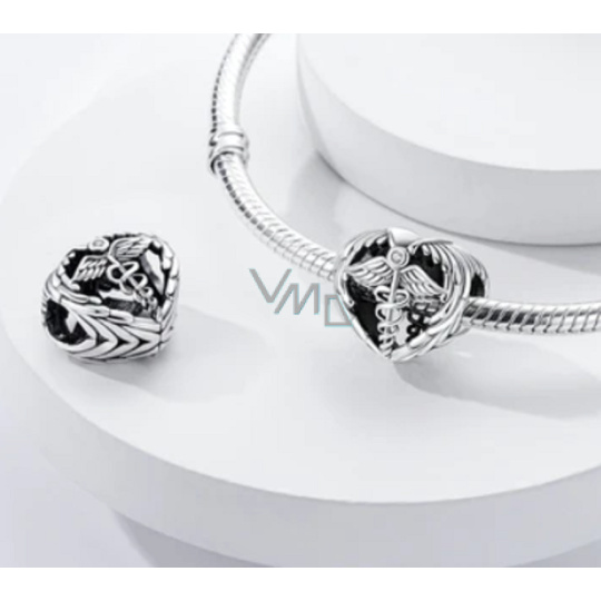 Charm Sterlingové stříbro 925 Gradace - Aeskulapova hůl - znak lékařů a farmaceutů, Absolvent korálek srdce na náramek zaměstnání