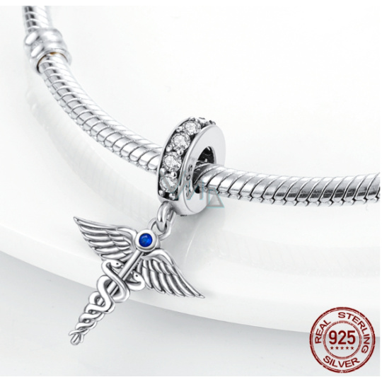 Charm Sterlingové stříbro 925 Gradace - Aeskulapova hůl - znak lékařů a farmaceutů, Absolvent přívěsek na náramek zaměstnání