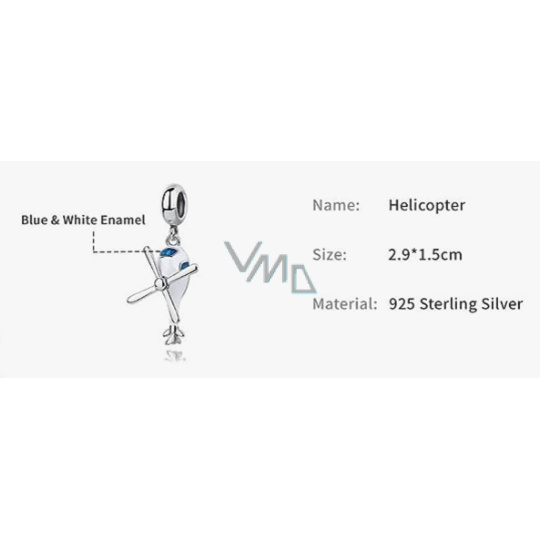Stylový přívěsek, vyrobený ze sterlingového stříbra, zdobený krásně propracovanou helikoptérou, byl inspirován cestováním, protože cestovat znamená žít. Dokonalý dárek pro všechny vášnivé cestovatelky. S každým přívěskem vyprávěj svůj příběh a vytvoř si náramek, který odráží, kdo jsi. Tvůj styl. Tvůj náramek. Tvůj příběh.