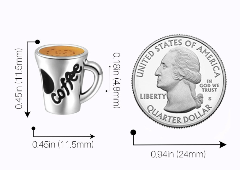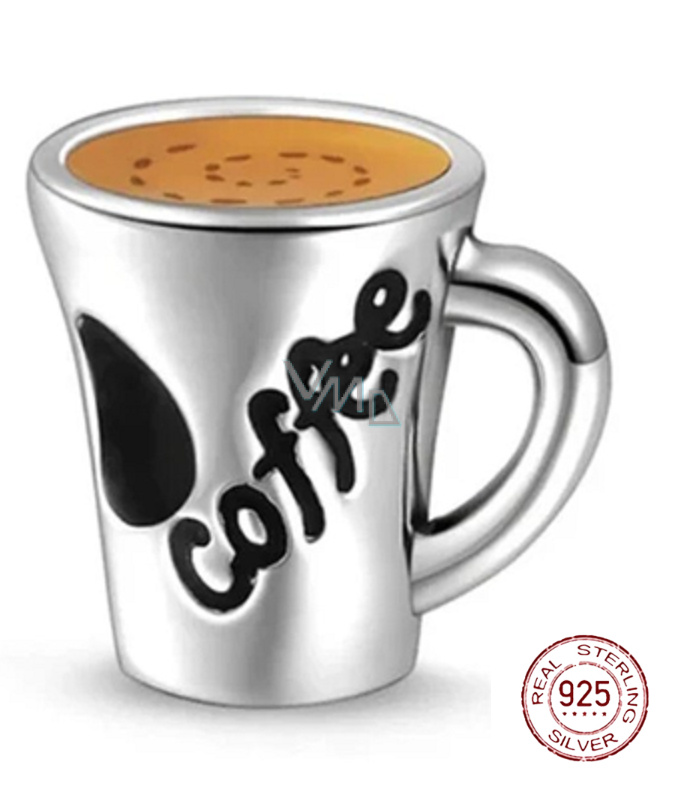 Stříbrný korálek pro všechny milovníky lahodné kávy. Korálek je také skvělým dárkem pro vaši nejlepší kamarádku, se kterou trávíte společné chvíle u dobré kávy. S tímto korálkem si Vaše přítelkyně vždy připomene, jak moc vám na ní záleží. Přívěsek 925 Sterling Silver se šálkem kávy s vyrytým nápisem „Coffee “. Navrženo s hladkým černým smaltem.