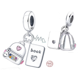 Charm Sterlingové stříbro 925 Kniha, aktovka a smajlík, 2v1 přívěsek na náramek zájmy