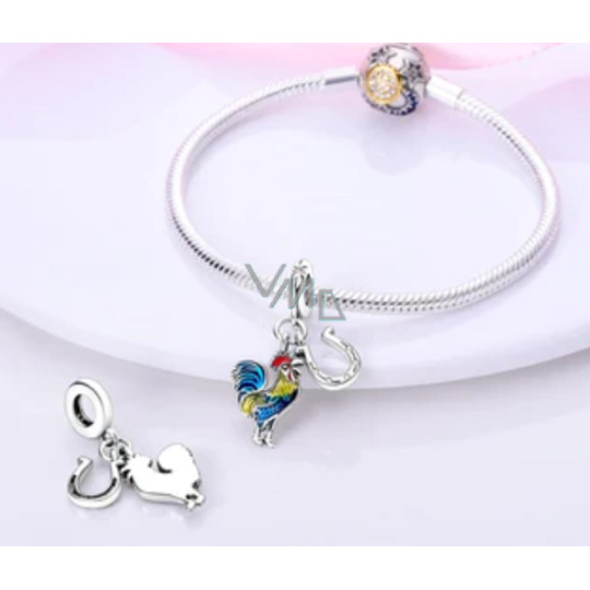 Charm Sterlingové stříbro 925 Kohout a podkova 2v1, přívěsek na náramek zvíře