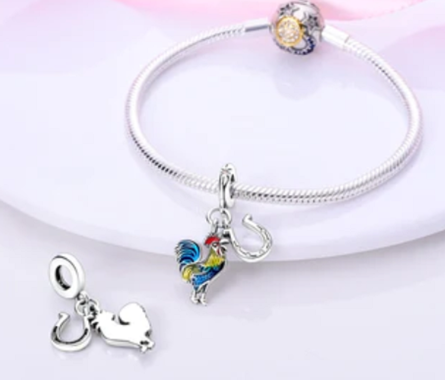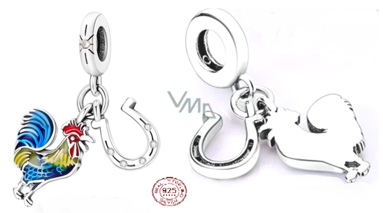 Charm Sterlingové stříbro 925 Kohout a podkova 2v1, přívěsek na náramek zvíře