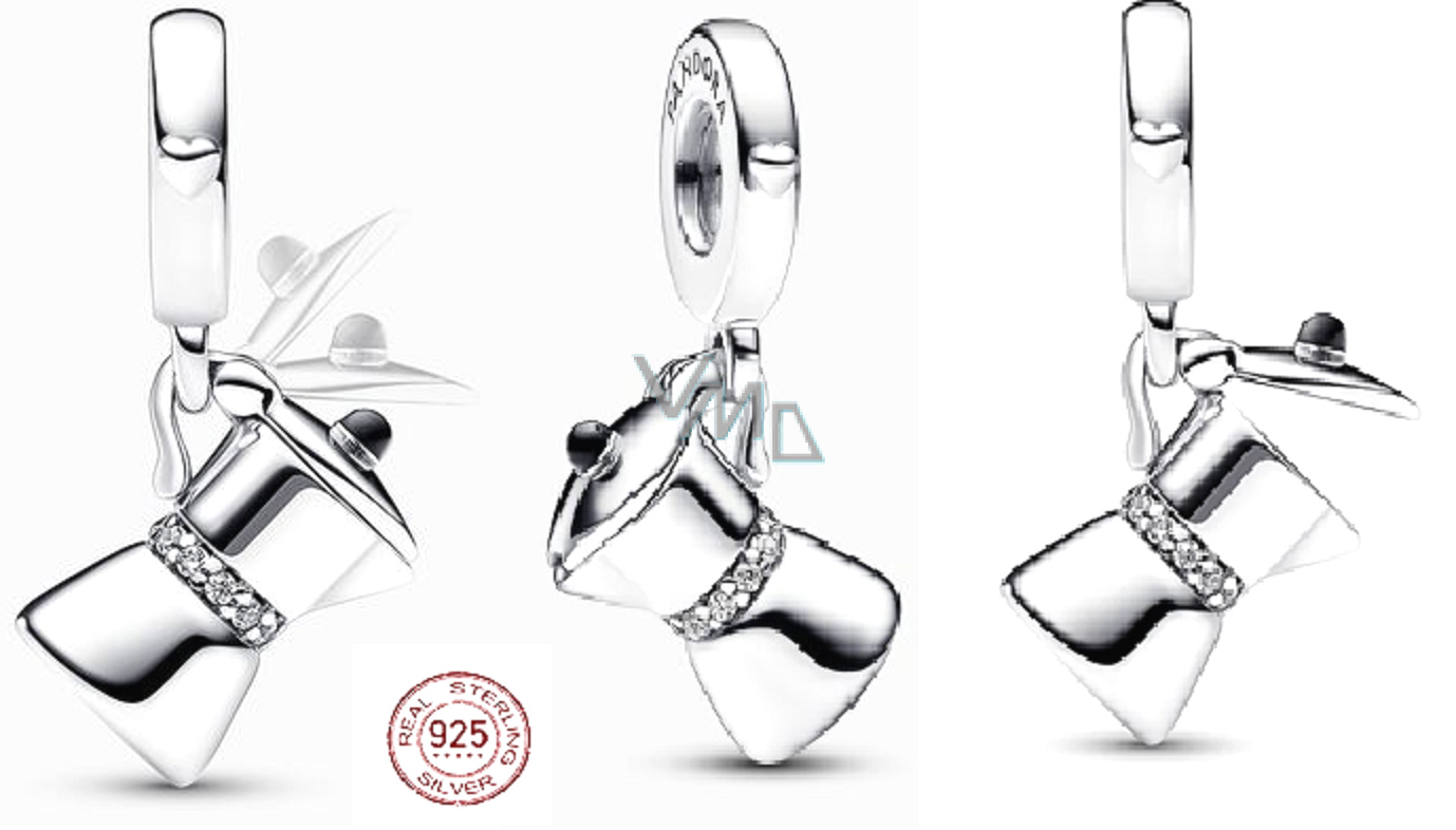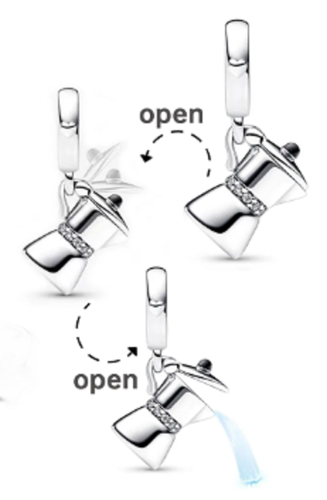 Charm Sterlingové stříbro 925 Konvice na kafé, otevíratelný přívěsek na náramek, jídlo a pití
