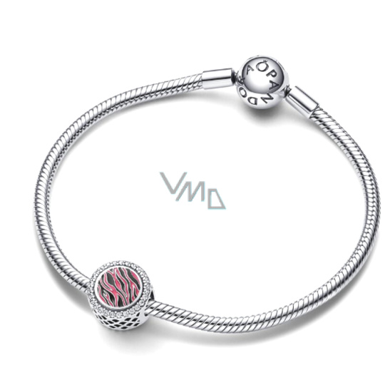 Charm Sterlingové stříbro 925 Kouzlo s tiskem zebry růžový, korálek na náramek zvíře