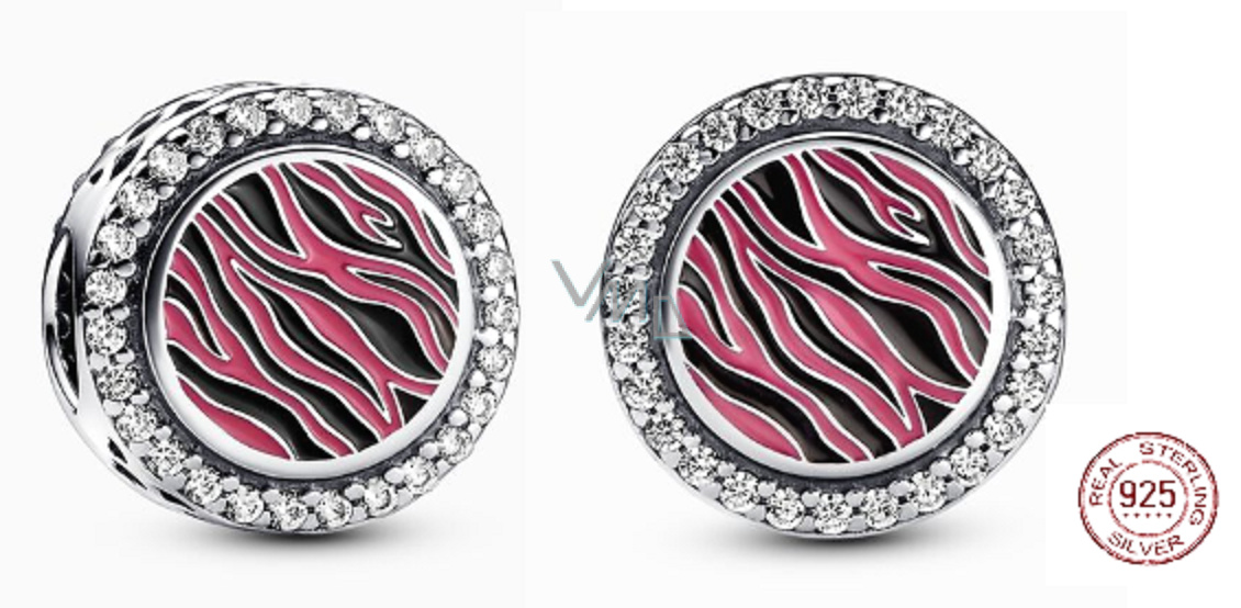 Charm Sterlingové stříbro 925 Kouzlo s tiskem zebry růžový, korálek na náramek zvíře