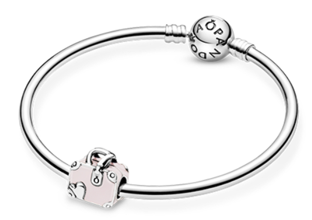 Vyprávějte svůj příběh nošením svého oblíbeného náramku s tímto přívěskem na kufr. Zdobený barevnými srdíčky s růžovým smaltem. Na přívěsku 925 Sterling Silver je vyryto nápis „Love travels“, Láska cestuje. Přívěsek, který vás zve, abyste si ho vzali s sebou na náramek nebo náhrdelník na své další dobrodružství. Růžová barva šperku určitě zaujme,