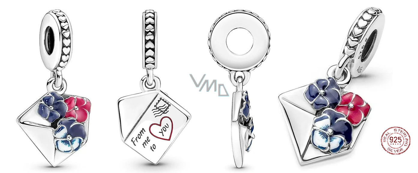 Charm Sterlingové stříbro 925 Květinová obálka, přívěsek na náramek láska