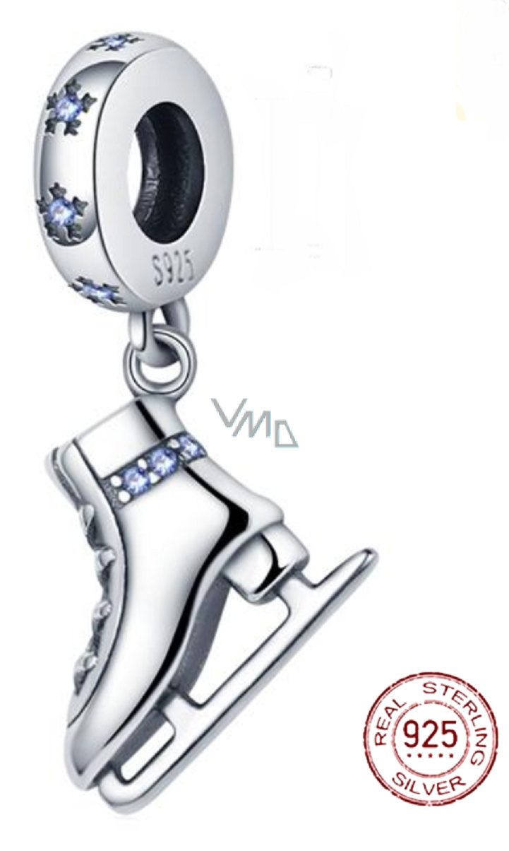 Charm Sterlingové stříbro 925 Lední brusle s modrými zirkony, přívěsek na náramek sport