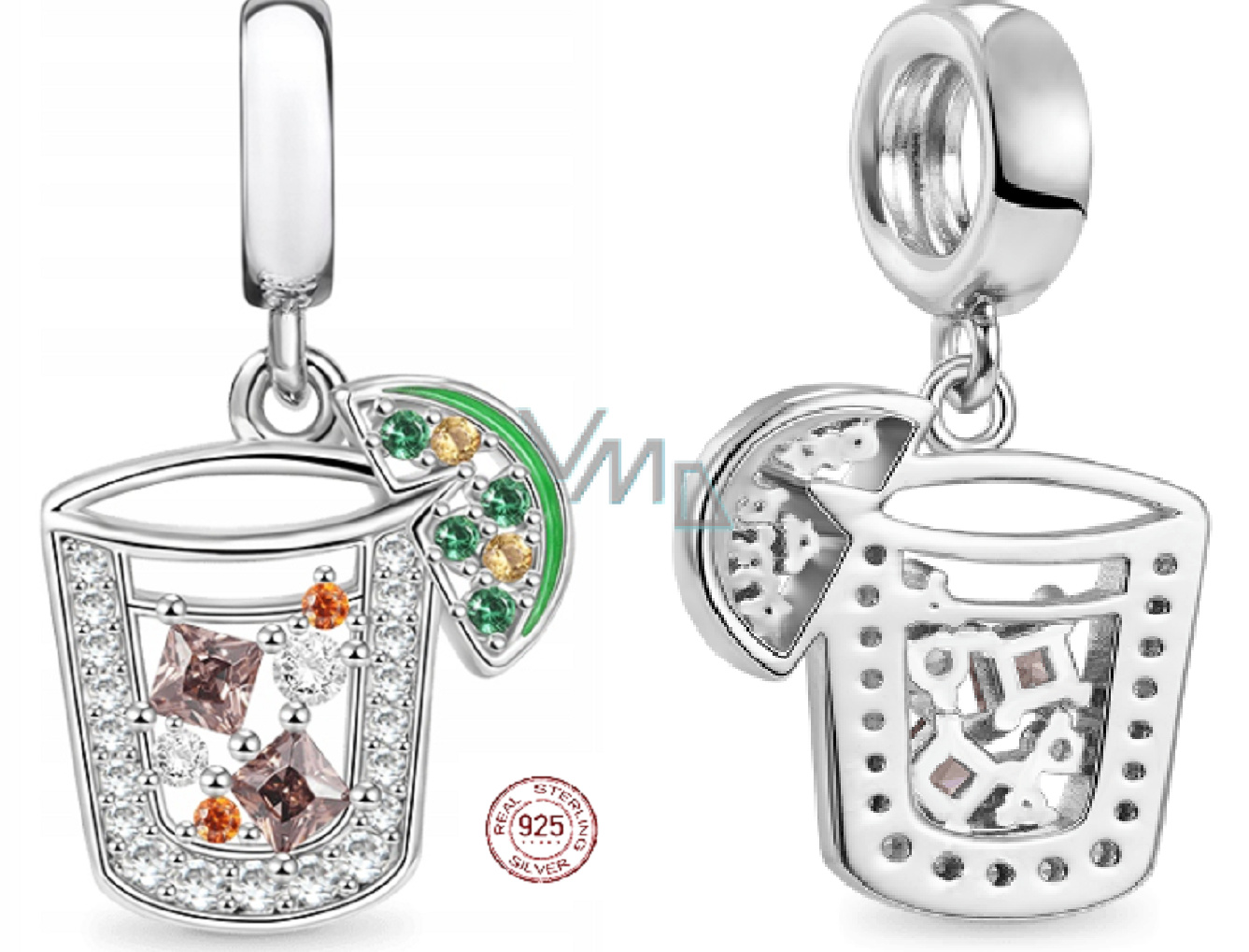 Charm Sterlingové stříbro 925 Ledový čaj a plátek cukru, přívěsek na náramek jídlo a pítí
