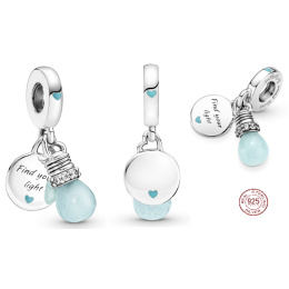 Charm Sterlingové stříbro 925 Žárovka - Najdi své světlo, 2v1 zářící ve tmě luminozní přívěsek na náramek symbol