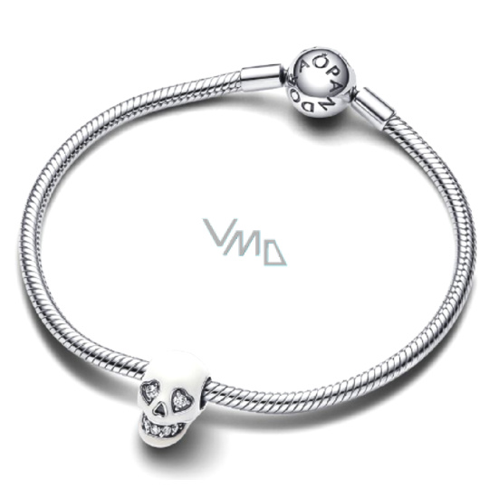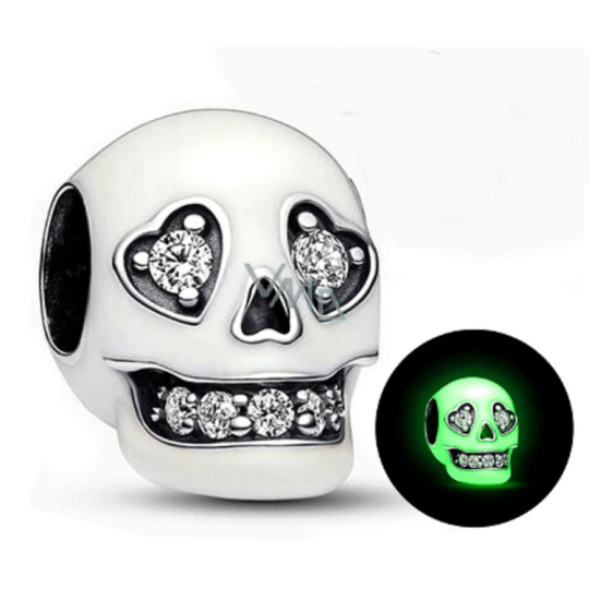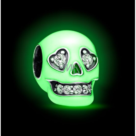 Charm Sterlingové stříbro 925 Lebka zářící ve tmě, luminozní korálek na náramek Halloween