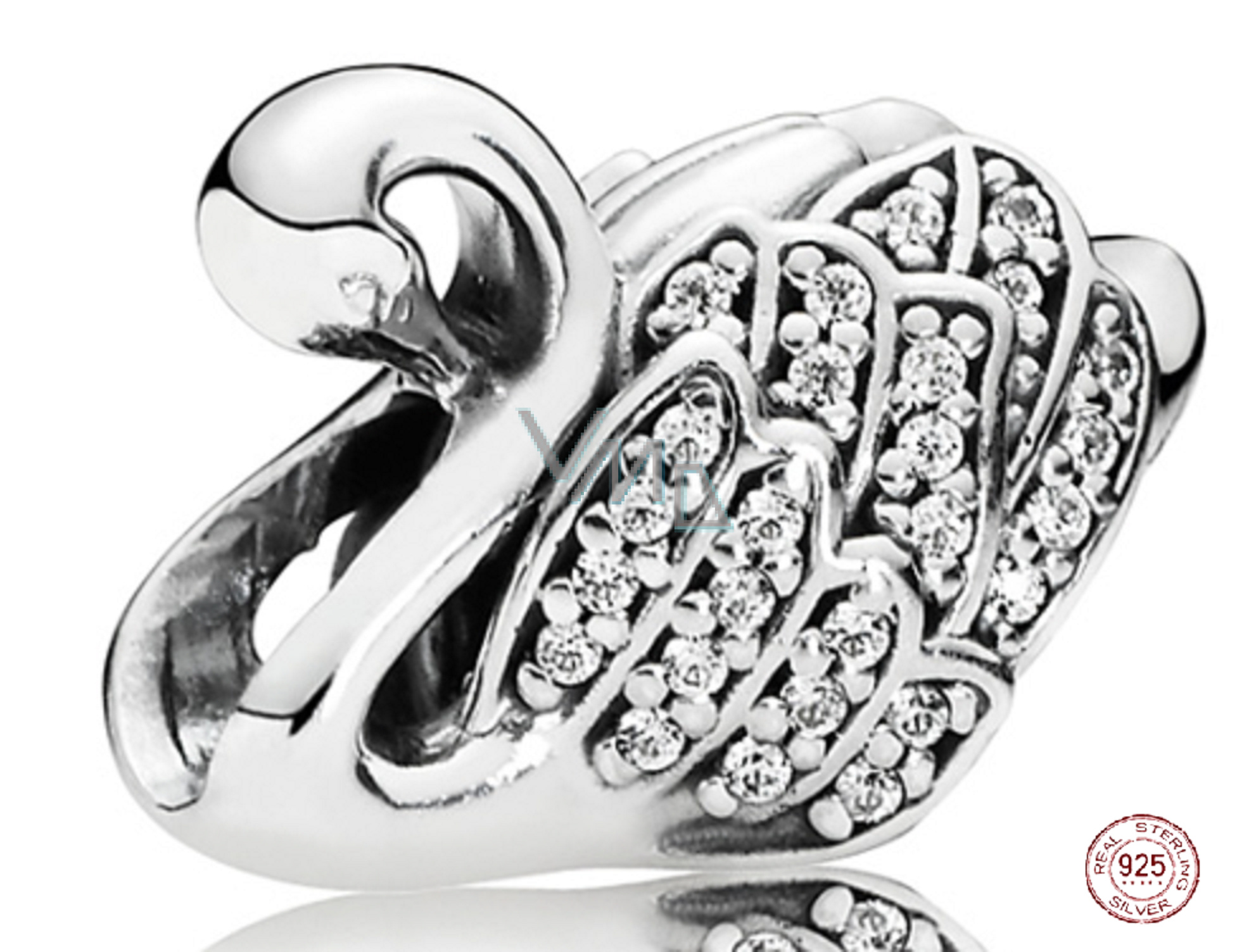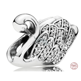 Charm Sterlingové stříbro 925 Majestátní labuť, korálek na náramek zvíře