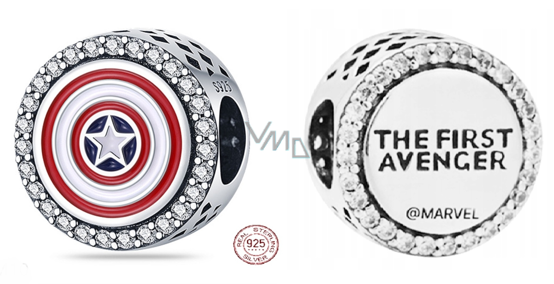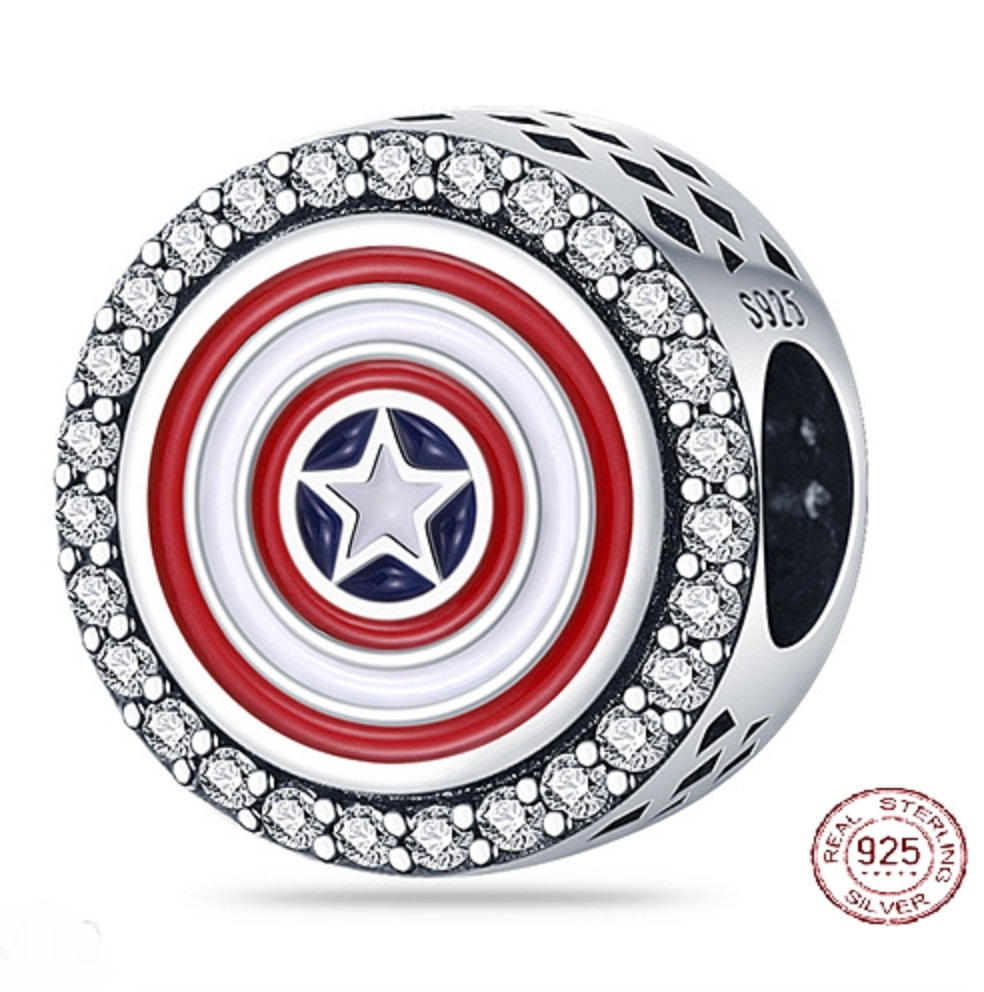 Charm Sterlingové stříbro 925 Marvel The Avengers, Captain America štítové kouzlo, korálek na náramek film