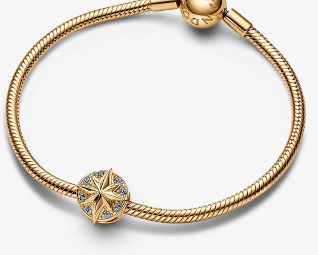 Vneste do své sbírky šperků sílu s přívěskem Emblém Captain Marvel. Tento kulatý přívěsek z jedinečné jemně pozlacený 14karátovým zlatem je inspirovaný hrdinkou Captain Marvel ze série MARVEL a zdobí ho na každé straně motiv Hvězdy. Na jedné ze stran je 3D hranol ve tvaru Hvězdy. Tento motiv symbolizuje sílu a odvahu a je doplněn třpytivými krystaly v různých barvách na podporu motivu. S gravírovaným nápisem „HIGHER FURTHER FASTER“ vám bude připomínat, že máte vždy usilovat o své sny.