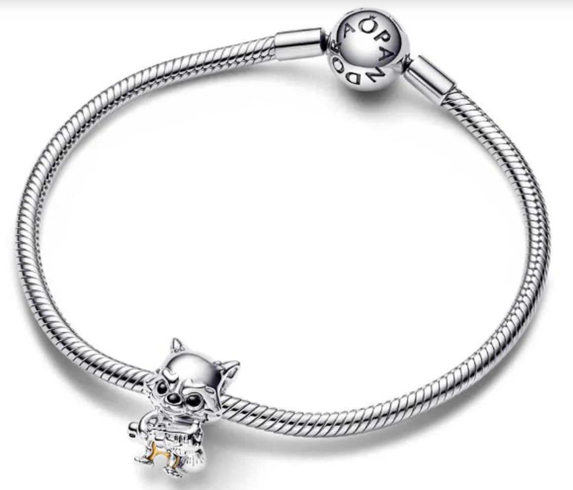 Rocket, zkušený pilot a střelec, pózuje se svým laserovým dělem a jetpackem Aero-Rigs. Je vyroben ze sterlingového stříbra s ručně aplikovanými detaily smaltu, které zvýrazňují jeho kombinézu a nevrlé chování. Jeho ocas, lemovaný rýhami, aby měl vzhled jako srst, se mu stočil kolem těla. S vyrytým nápisem „NOTHING LIKE ME 'CEPT ME“, NIC JAKO JÁ MĚ NEPŘEJTE na zadní straně jeho hlavy noste toto kouzlo jako připomínku, abyste byli vždy hrdí na to, kdo jste.