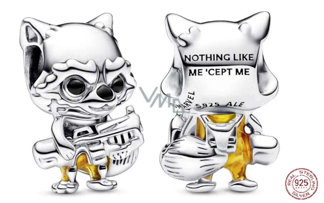 Charm Sterlingové stříbro 925 Marvel Strážci Galaxie, Mýval Rocket, korálek na náramek film