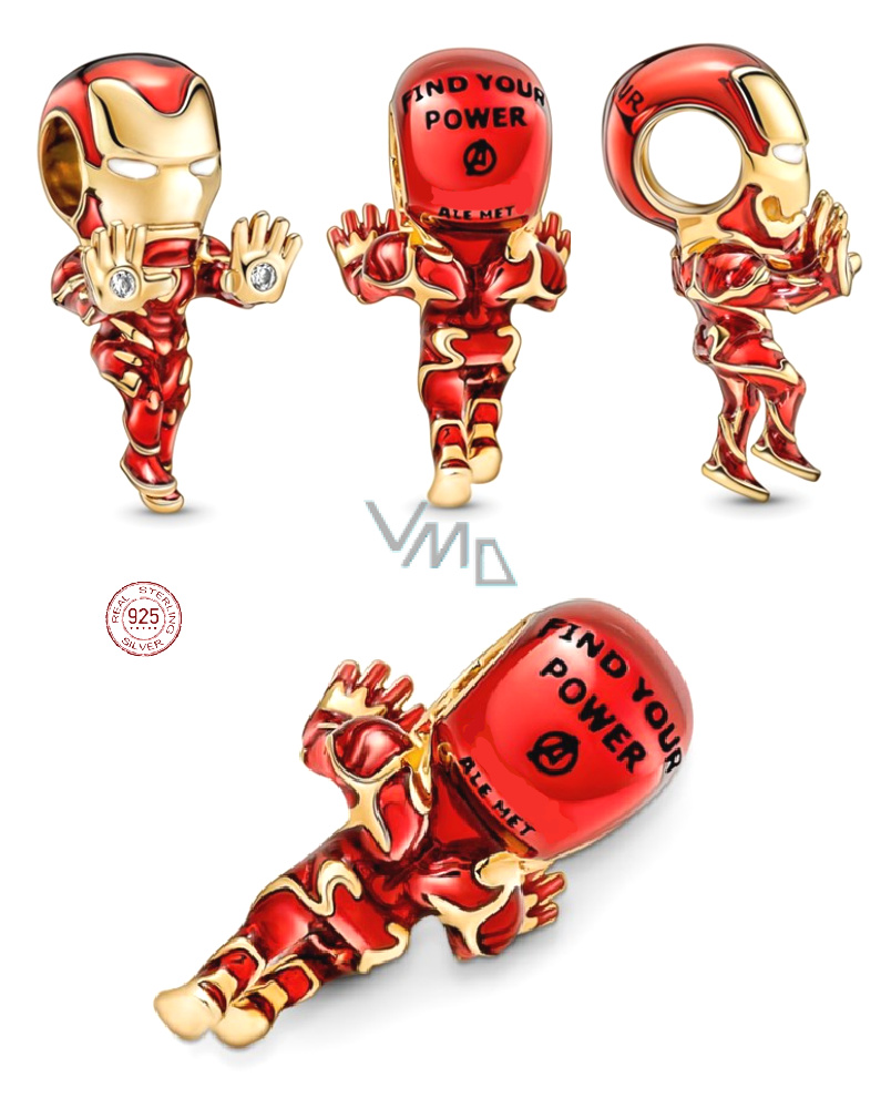 Charm Sterlingové stříbro 925 Marvel The Avengers, Iron Man, korálek na náramek, film