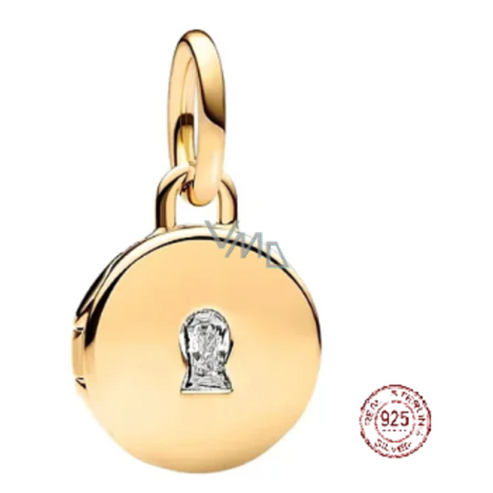 Charm Sterlingové stříbro 925 medailon zlatý Klíč, přívěsek na náramek láska