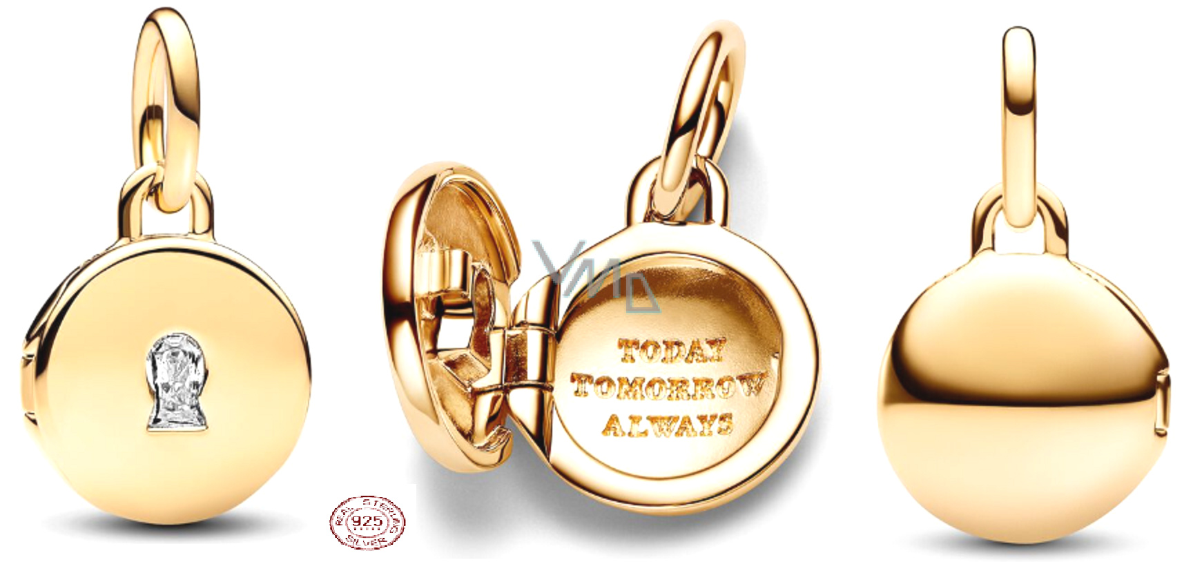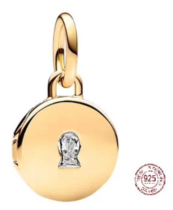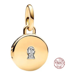 Charm Sterlingové stříbro 925 medailon zlatý Klíč, přívěsek na náramek láska