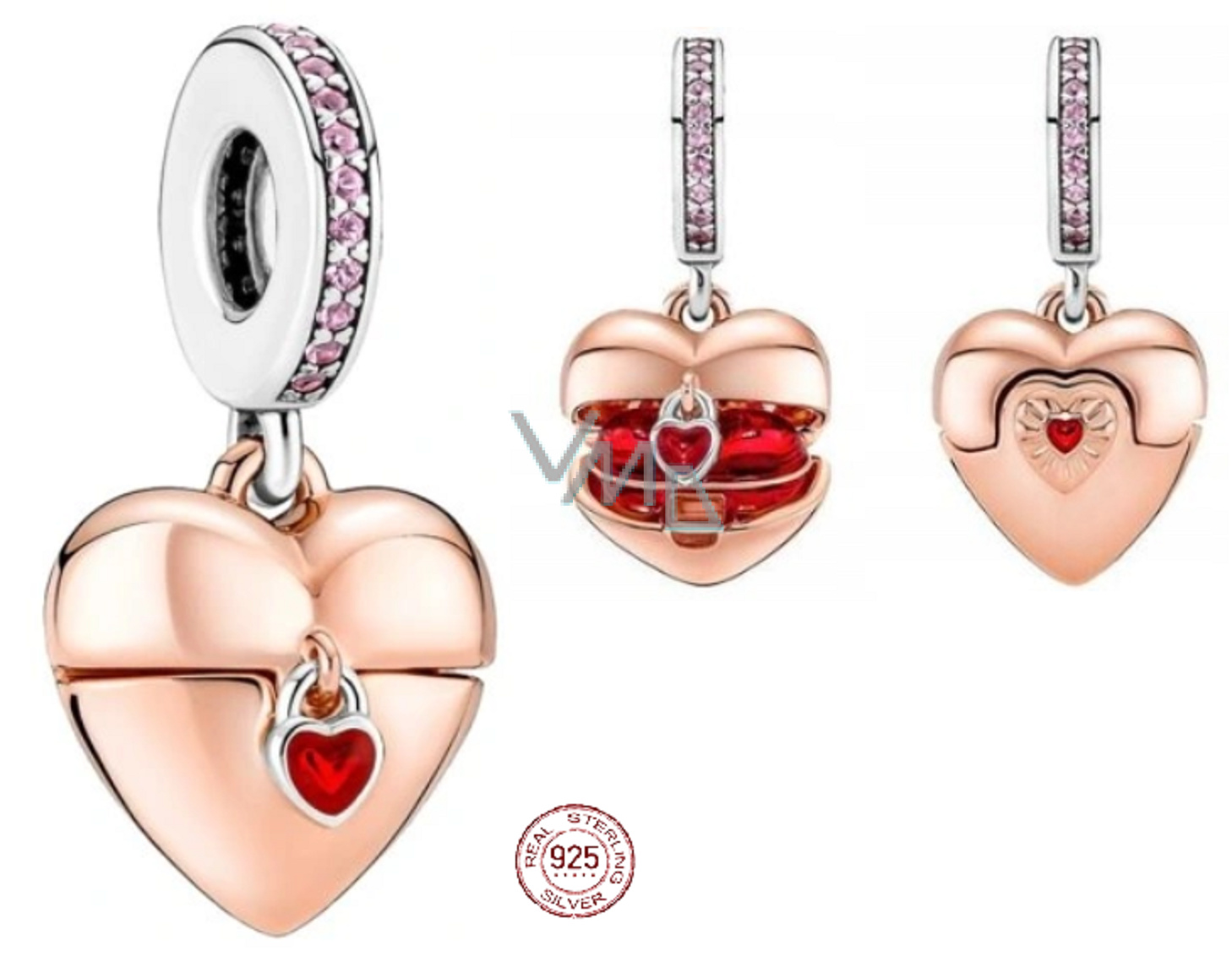 Charm Sterlingové stříbro 925 Milostné srdce otevírací pozlacené růžovým zlatem, přívěsek na náramek láska