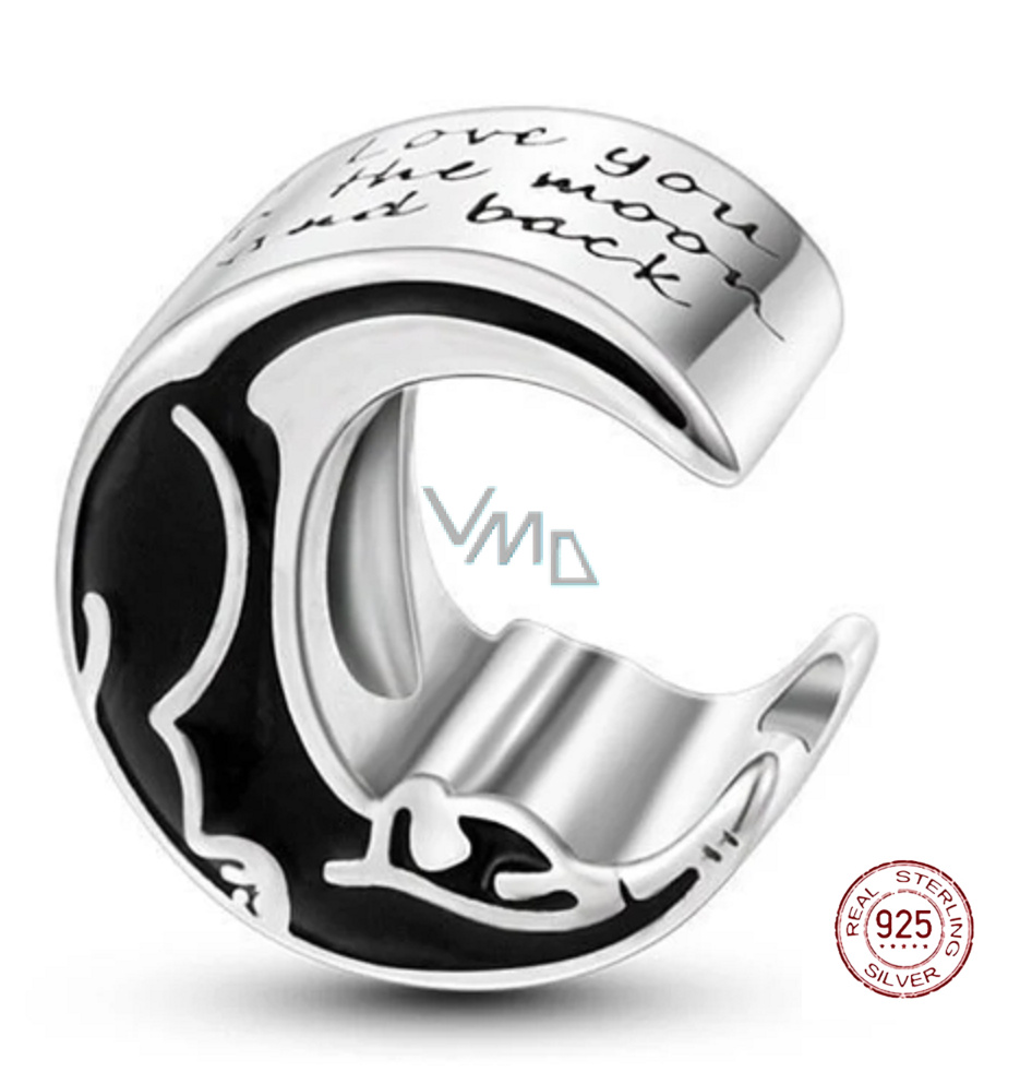 Charm Sterlingové stříbro 925 Miluji tě až na Měsíc a zpět, korálek na náramek láska