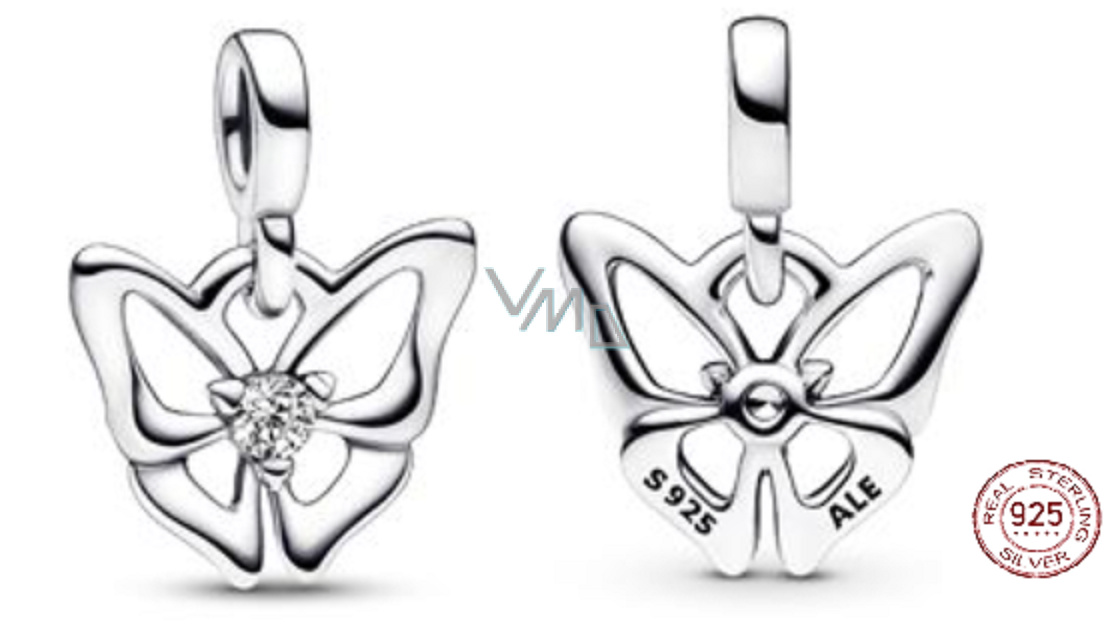 Charm Sterlingové stříbro 925 Motýl - Mini Medailon s čirou kubickou zirkonií, přívěsek na náramek zvíře