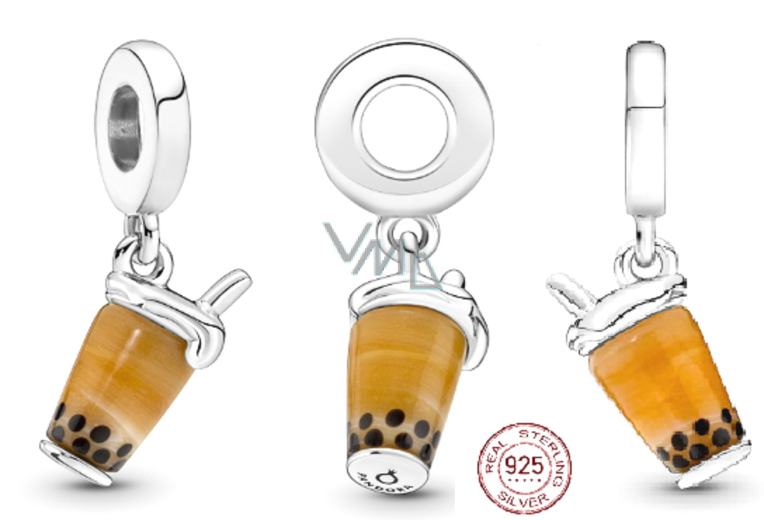 Charm Sterlingové stříbro 925 Bubble Tea - Mléčný čaj, přívěsek na náramek, jídlo a pití