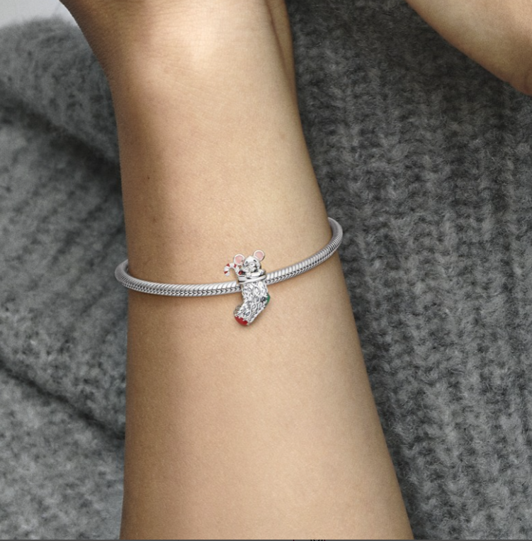 Charm Sterlingové stříbro 925 Myška ve vánoční punčoše, korálek na náramek Vánoce