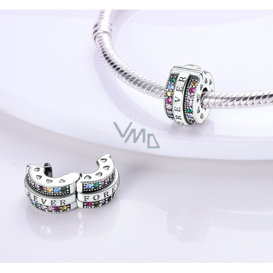 Charm Sterlingové stříbro 925 Navždy barevné zirkony, stopper, klipový korálek na náramek láska