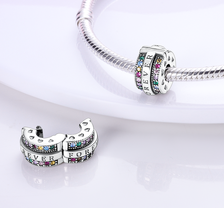 Charm Sterlingové stříbro 925 Navždy barevné zirkony, stopper, klipový korálek na náramek láska