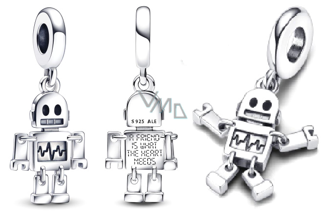 Charm Sterlingové stříbro 925 Nejlepší přítel robot Bot, přívěsek na náramek, přátelství