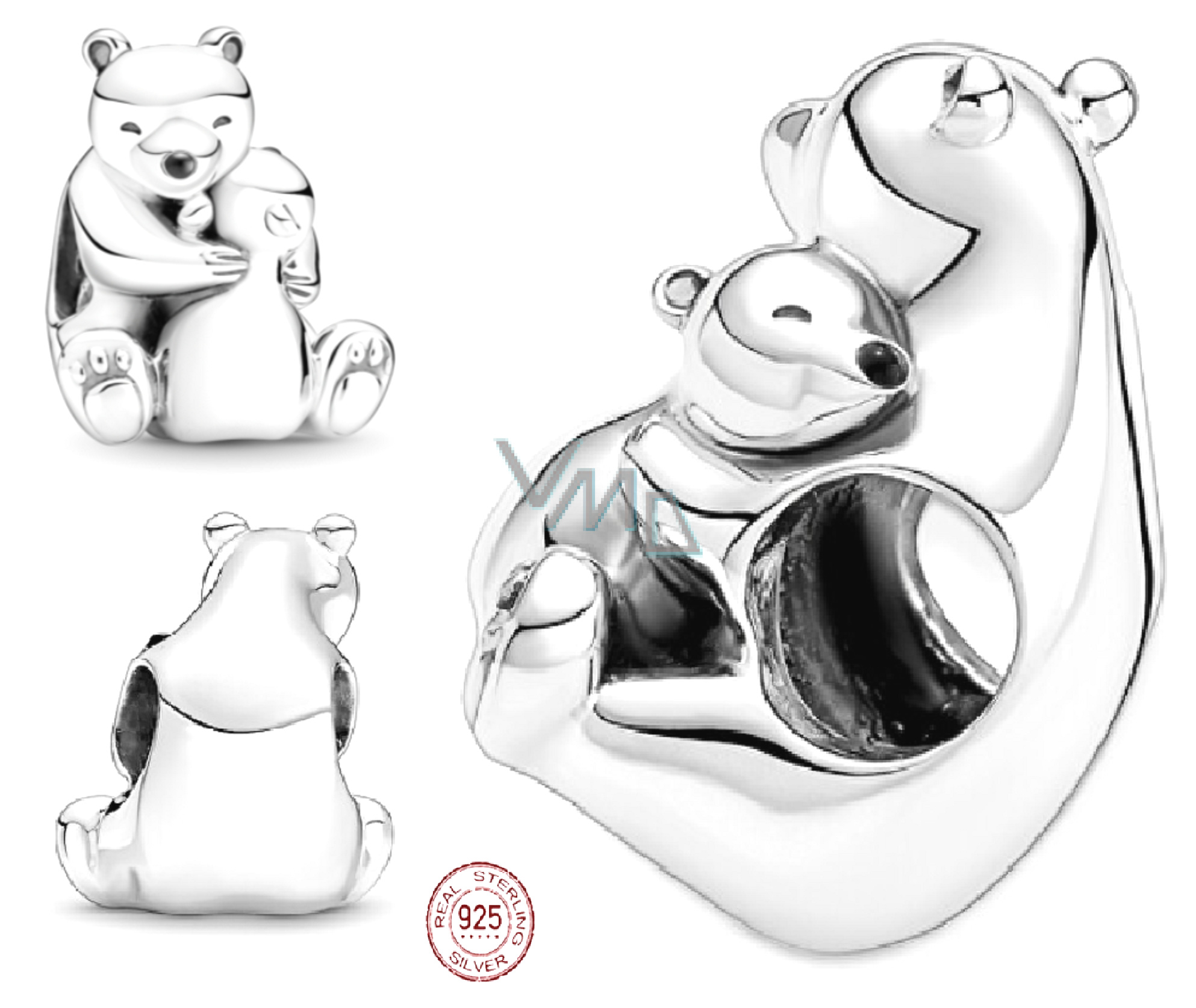 Charm Sterlingové stříbro 925 Objímající se lední medvědi, korálek na náramek rodina