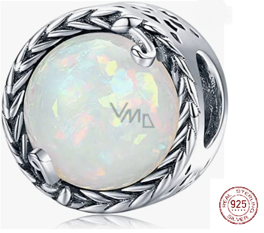 Charm Sterlingové stříbro 925 Minimalistická réva, Opál syntetický, korálek na náramek, symbol