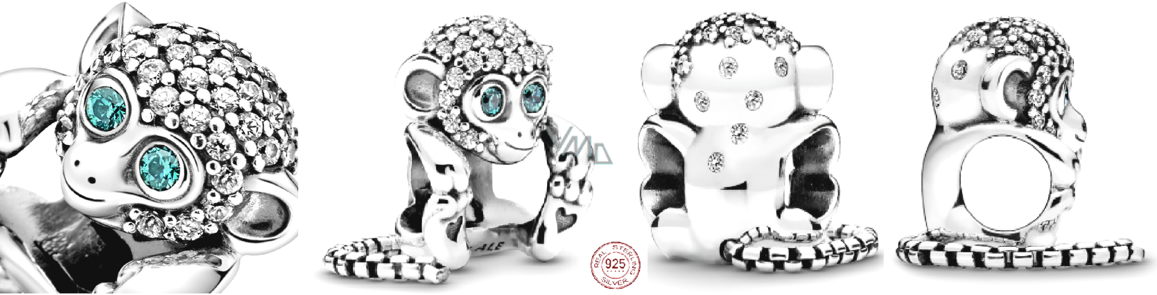 Charm Sterlingové stříbro 925 Opice, symbol moudrosti, volnosti, korálek na náramek zvíře