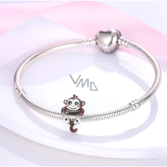 Charm Sterlingové stříbro 925 Opička se dvěma srdíčky, korálek na náramek zvíře