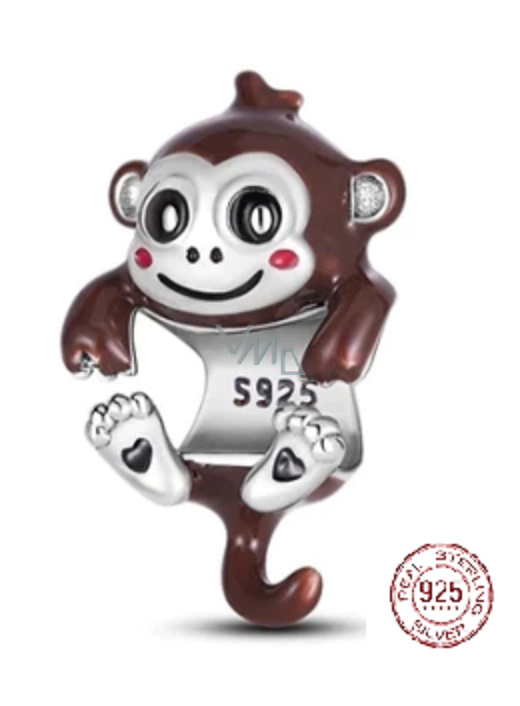 Přívěsek 925 Sterling Silver s roztomilou opičkou se dvěma malými srdíčky na chodidle, navržený s hladkým hnědým, černým a červeným smaltem. Opice symbolizují moudrost, radost a soucit. S každým přívěskem vyprávěj svůj příběh a vytvoř si náramek, který odráží, kdo jsi. Tvůj styl. Tvůj náramek. Tvůj příběh.