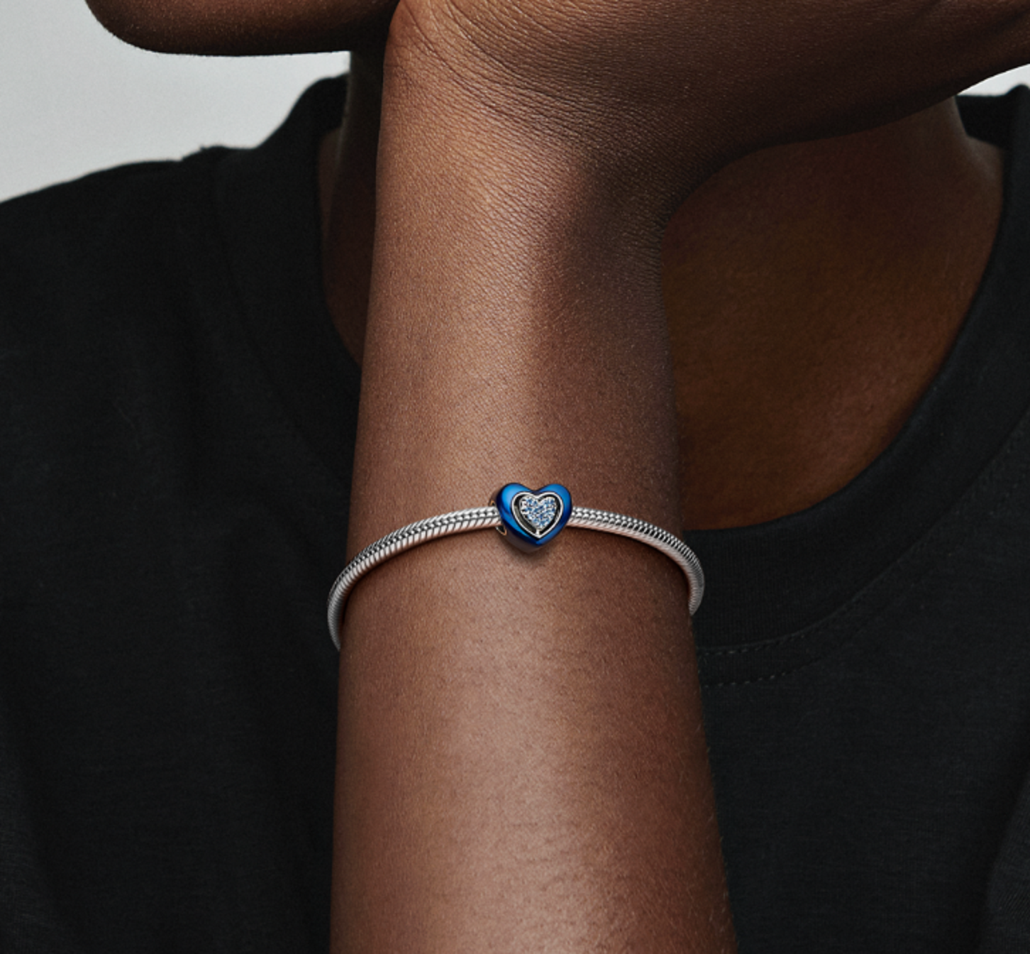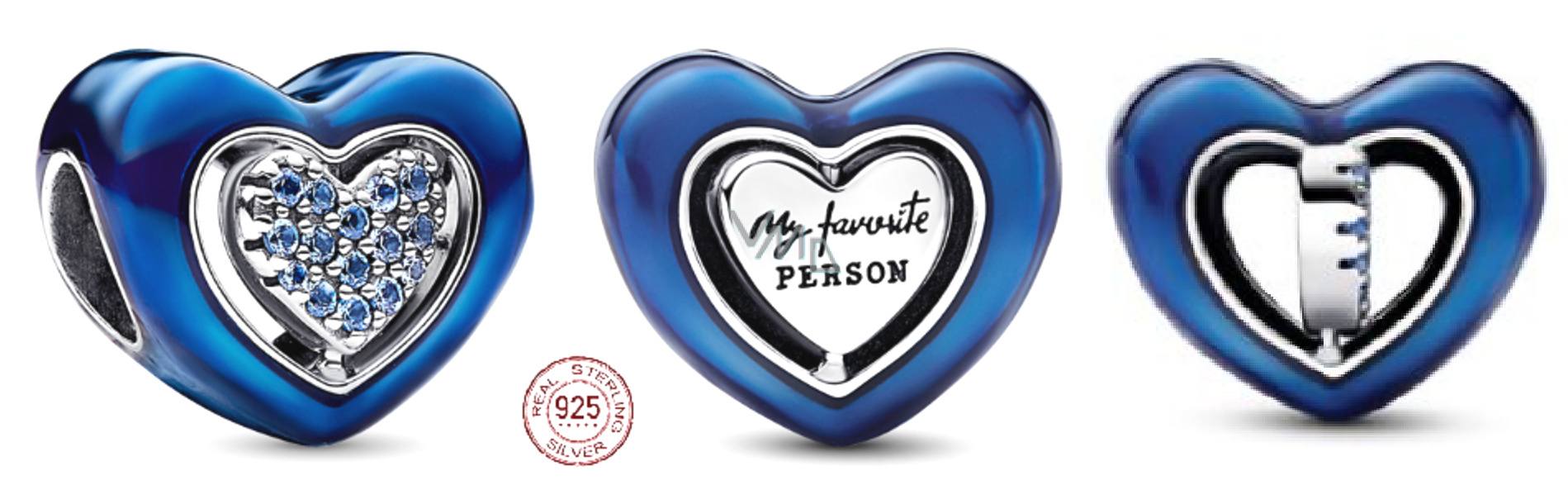Pociťte lásku v chladných modrých tónech s Blue Spinnable Heart Charm. Korálek ve tvaru srdce ze sterlingového stříbra je dekorován ručně nanášeným modrým smaltem, takže je ideální pro přidání šmrncu barvy do vašeho náramku. Na tomto přívěsku je na jedné ze stran točící se kotouč pokrytý modrou jiskrou na jedné straně a vyrytý vzkaz s nápisem „Moje oblíbená osoba“ na straně druhé.