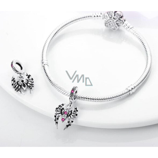 Charm Sterlingové stříbro 925 Pavouk, Spider, černá vdova s růžovými a bílými zirkony, přívěsek na náramek zvíře