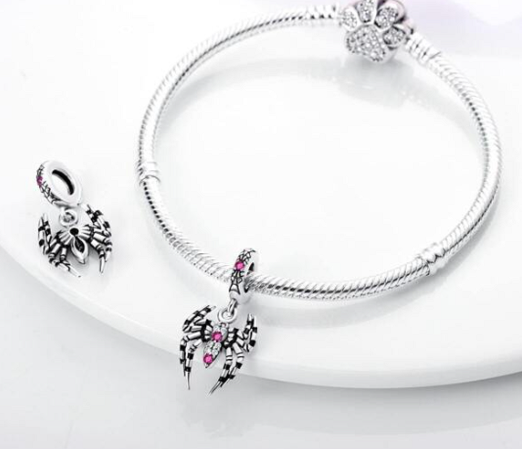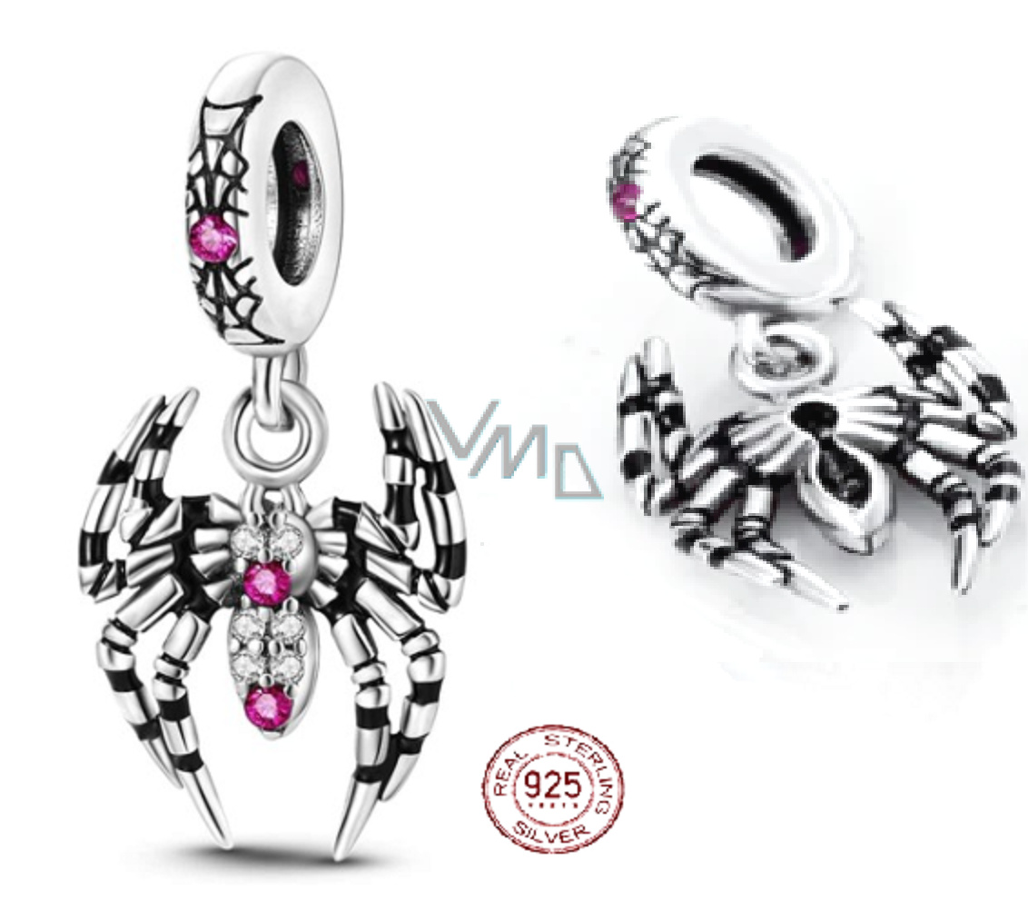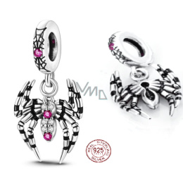 Charm Sterlingové stříbro 925 Pavouk, Spider, černá vdova s růžovými a bílými zirkony, přívěsek na náramek zvíře