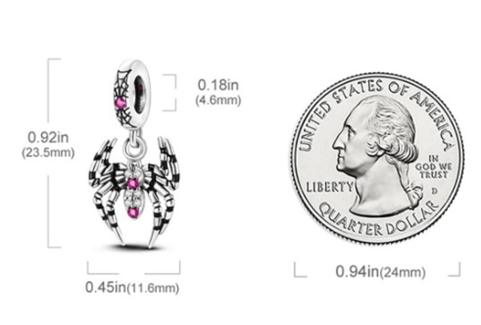 Visací přívěsek 925 Sterling Silver s pavoukem, dekorován hladkým černým smaltem a růžovými a bílými třpytivými drahokamy Zirkonu. Na prstenu přívěsku je pavučina s růžovým Zirkonem uprostřed. pavouci symbolizují trpělivost, moudrost a stvoření. S přívěskem vyprávěj svůj příběh a vytvoř si náramek, který odráží, kdo jsi a co je pro tebe důležité. Tvůj styl. Tvůj náramek. Tvůj příběh.