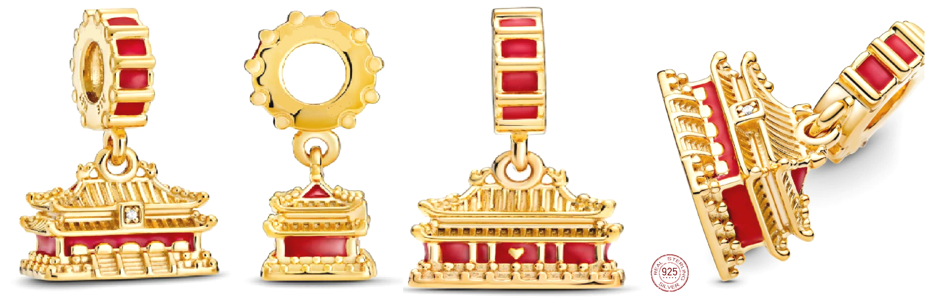 Přívěsek ze Zakázaného města v Pekingu oživuje zasněnou královskou atmosféru nádhery, vyřezávaných zábradlí a malovaných budov a hřejivého nefritu a kouře. Zakázané město jako ikonické ceremoniální a politické centrum Číny zaujímá v čínské historii velmi zvláštní postavení. Připomeňte si svou návštěvu Zakázaného města tímto ručně vyrobeným kouzlem. Je vyrobena z pozlacené slitiny mědi a stříbra a je vykládána čirými kamínky kubické zirkonie. Přívěsek Zakázané město je zdoben ručně malovanými červenými smaltovanými detaily a rytinou „BJ“ (Peking).