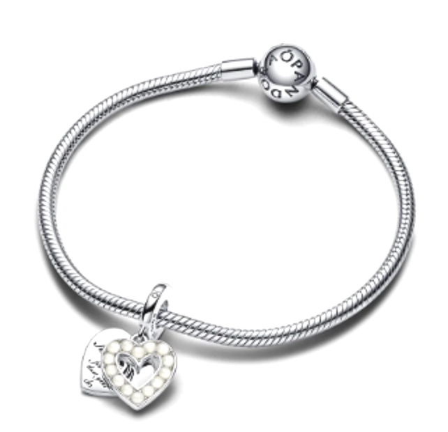Charm Sterlingové stříbro 925 Perleťové bílé srdce 2v1, přívěsek na náramek rodina