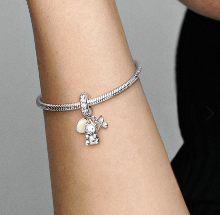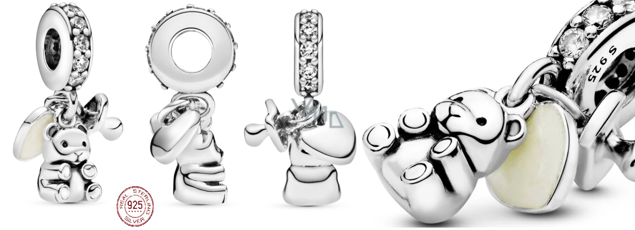 Charm Sterlingové stříbro 925 Plyšový medvídek pro miminko 3v1, přívěsek na náramek rodina